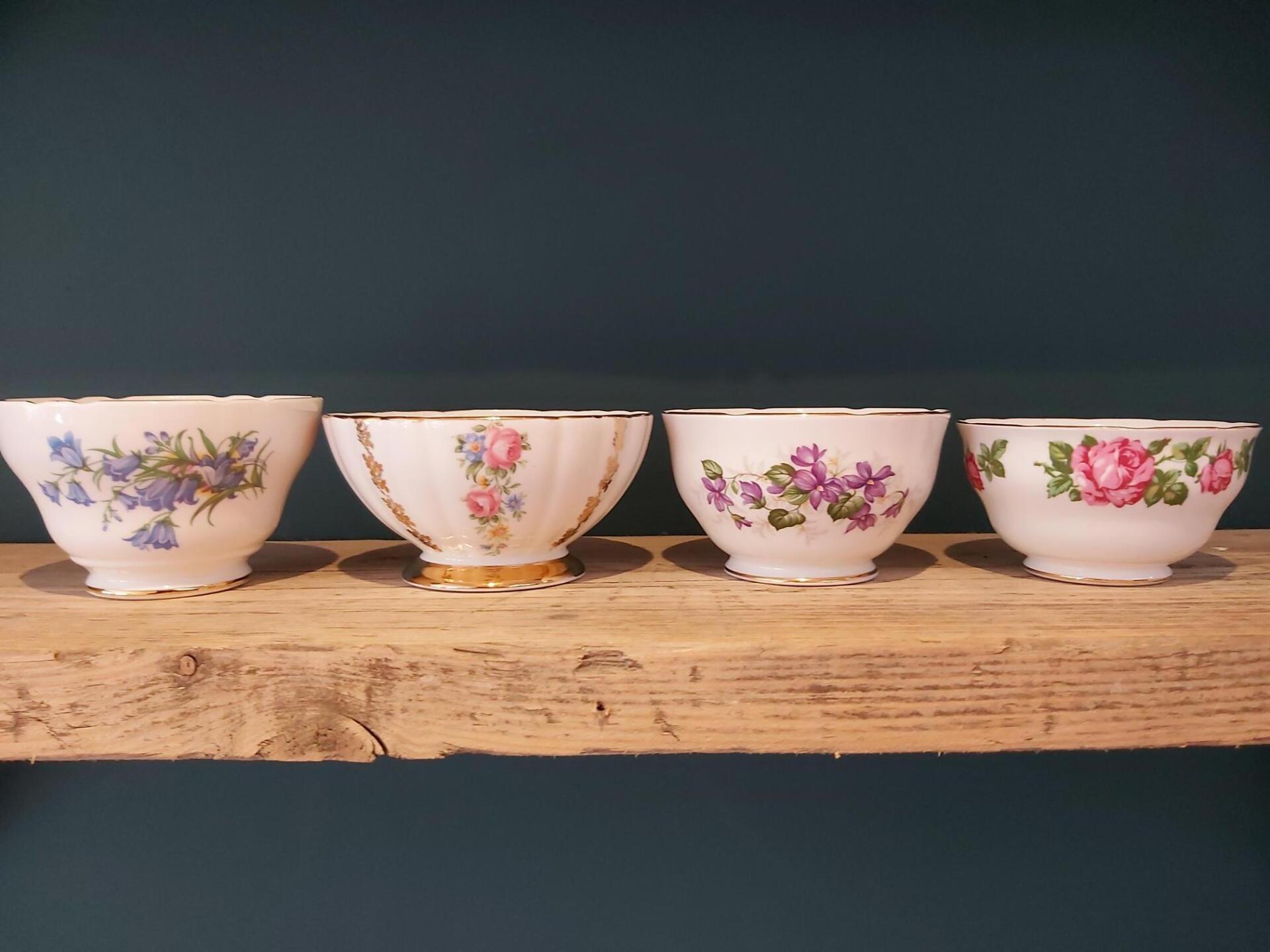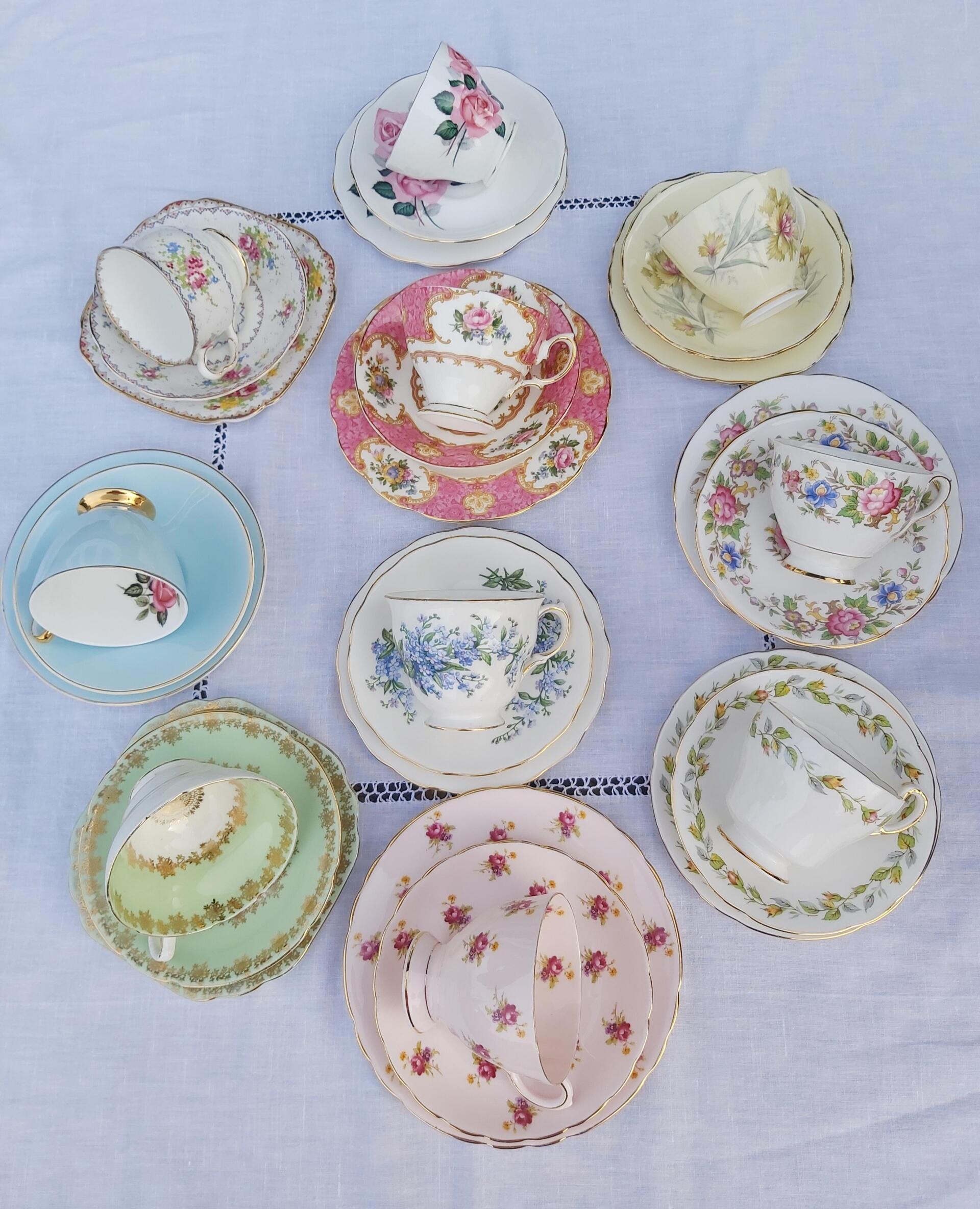 Gallery of some of our vintage bone china which includes items from Tuscan, Adderley, Duchess, Colclough, Royal Albert and many other classic English bone china manufacturers. We are very particular when it comes to vintage china and what we will include in our collection. Our customers have been delighted with our pretty china which makes us feel proud of the effort we put into sourcing only the best vintage china.
